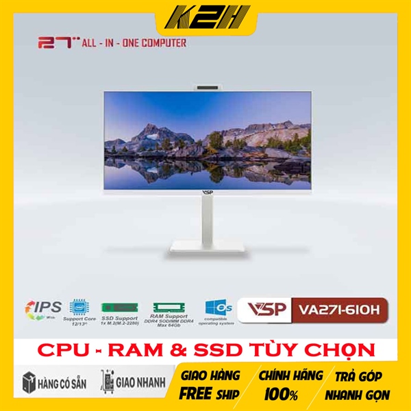 Máy Tính All in One VA271-610H Trắng/27inch/FULL HD 1920×1080/60Hz (CHƯA BAO GỒM CPU, RAM & Ổ CỨNG) | HÀNG CHÍNH HÃNG