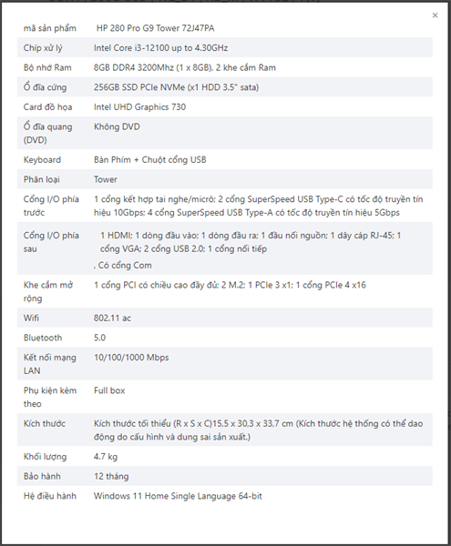 Hãy là người đầu tiên nhận xét “Máy tính để bàn | HP Pro Tower 280 G9 PCI, Core i3 12100,8GB RAM,256GB SSD,Intel Graphics,Wlan ac+BT,Keyboard,Mouse,Win 11 Home 64,1Y WTY_72J47PA | BOX CHÍNH HÃNG” Hủy
