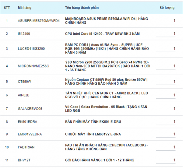 MÁY VĂN PHÒNG & HỌC TẬP | K2H VP CORE I5 GEN 12 – 1 | B760 WIFI D4/ CORE I5 12400/ RAM 16G/ SSD NVME 256G/ PSU 550W