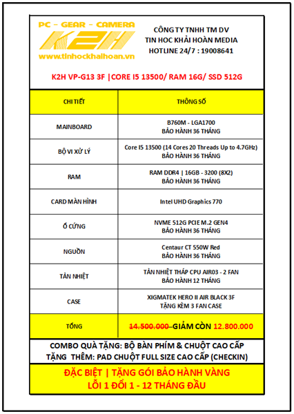 PC GEN 13 | CORE I5 13500/ RAM 16G/ SSD 512G/ PSU 550W