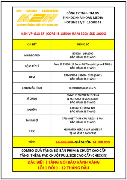 PC GEN 13 | CORE I5 13500/ RAM 32G/ SSD 1000G/ PSU 550W