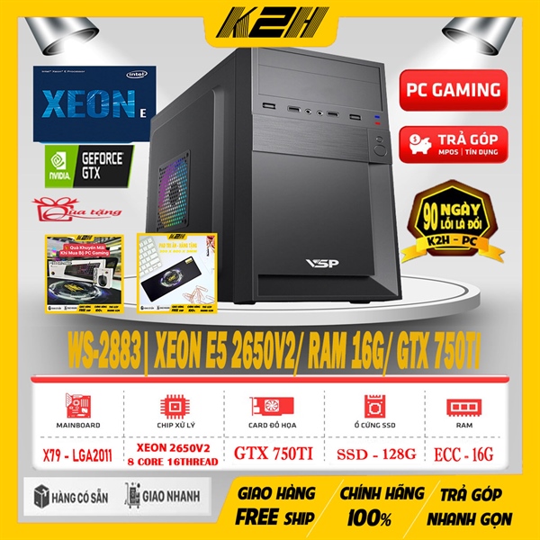 BỘ MÁY | K2H XEON 2650V2 (8 NHÂN 16 LUỒNG)/ RAM 16G/ VGA 750TI/ SSD 128G/ PSU 450W