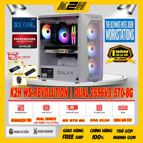 K2H WS-REVOLUTION | DUAL XEON 2696V3 (36 NHÂN 72 LUỒNG)/ RAM ECC 64G/ VGA RX 570 8G/ SSD 512G/ PSU 750W