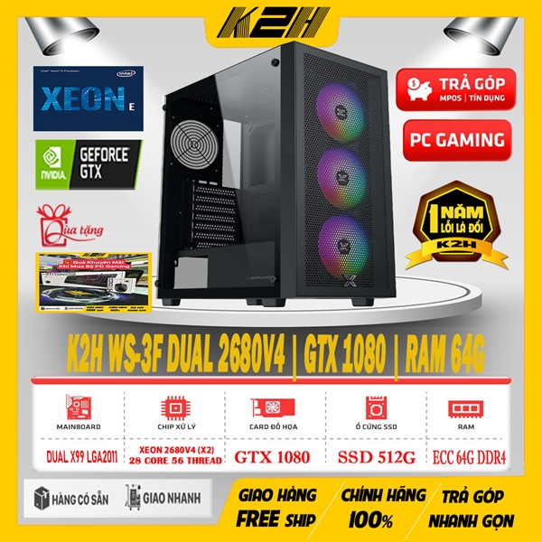 PC WORKSTATION | K2H WS-3F | DUAL XEON E5 – 2680V4 (28 NHÂN 56 LUỒNG) RAM 64G ECC DDR4/ SSD 512G/ VGA GTX 1080 8G (2ND) | PSU 750W