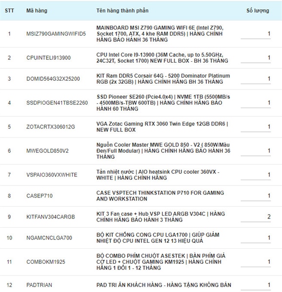 Hãy là người đầu tiên nhận xét “PC WORKSTATION K2H WS-PRO | Z790 WIFI 6E D5/ CORE I9 13900/ RAM DDR5 64G – 5200/ VGA RTX 3060 12G/ SSD NVME 1TB GEN 4/ PSU 850 | TẢN NƯỚC AIO 360” Hủy