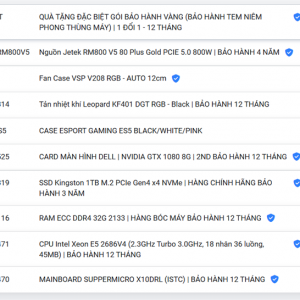 Hãy là người đầu tiên nhận xét “PC WORKSTATION | SUPPERMICRO X10DRL / DUAL 2686V4 (36 NHÂN 72 LUỒNG)/ SSD 1TB/ VGA GTX 1080 8G/ PSU 800W PLUS GOLD” Hủy