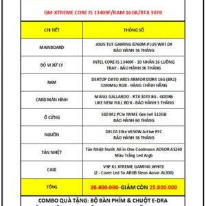K2H GM-X1 EXTREME TUF B760M WIFI/ CORE I5 13400F/ VGA RTX 3070 (2ND)/ RAM 16G/ SSD NVME 512G/ PSU 700W
