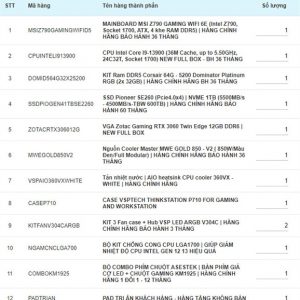 FULL DÀN MÁY | B760/ CORE I5 13400F/ VGA RTX 3060 12G/ RAM 16G/ SSD 512G/ PSU 700W + TẢN NƯỚC + CASE FULL LED + MÀN 27″ FAST IPS 180Hz/0,5Ms + BÀN IKEA 1M6 + GHẾ SALON VIP | TẶNG BẢO HÀNH LỖI 1 ĐỔI 1 – 12 THÁNG ĐẦU