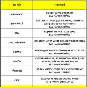 PC GAMING (HOT) | Z790 ATX – CORE I7 13700K/ VGA RTX 5070TI 16G GDDR7/ RAM 32G/ SSD 1TB NVME GEN4/ PSU 850W 80 PLUS GOLD + TẢN NƯỚC AIO 360
