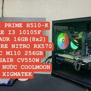 PC THANH LÝ | H510/ CORE I3 10105F/ RAM 16G/ VGA RX 570 8G/ SSD 256G/ PSU 550W + TẢN NƯỚC AIO 120 + CASE NHƯ HÌNH | BẢO HÀNH 1 THÁNG