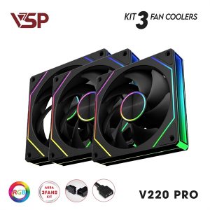 KIT 3 Fan Case – VSP V220 Pro (Bộ 3 quạt 120mm + Hub | ĐEN)