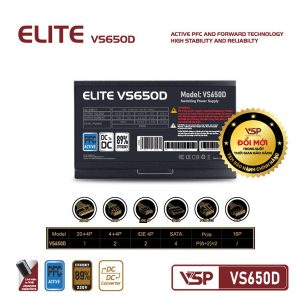 Bộ Nguồn VSP MEGAMAX ELITE VS650D 650W (Max 750W 89%| A.PFC| DC to DC | OCP, OPP, SCP, OVP) | CHÍNH HÃNG BẢO HÀNH 3 NĂM – ĐỔI MỚI