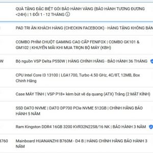 PC VĂN PHÒNG & HỌC TẬP | CORE I3 13100/ RAM 16G/ SSD NVME 512G/ PSU 550W