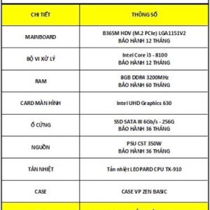 MÁY TÍNH VĂN PHÒNG & HỌC TẬP | K2H VP801 | B365/ CORE I3 8100/ RAM 8G/ SSD 256G/ PSU 350W