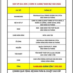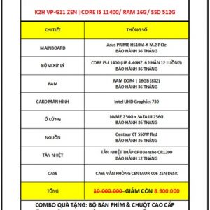 K2H VP-G11 ZEN | CORE I5 11400/ RAM 8G/ SSD 256G NVME/ PSU 350W