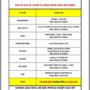 K2H GM-G12 D5 | CORE I5 13400F/ RTX 3060 – 12G/ RAM DDR5 32G/ SSD NVME 512G/ PSU 750W