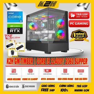 K2H GM-TIMBER | CORE I5 11400F/ 2060 SUPPER 8G OC/ RAM 16G DDR4/ SSD NVME 256G/ PSU 650W + TẢN NƯỚC 240 + 5 FAN LED RGB + CASXE BỂ CÁ