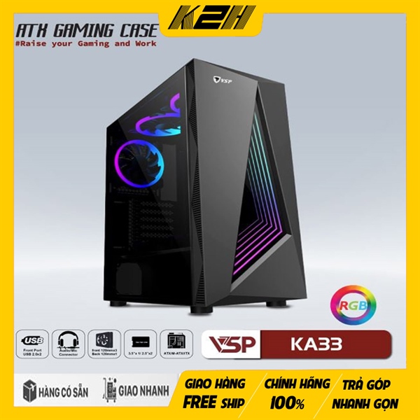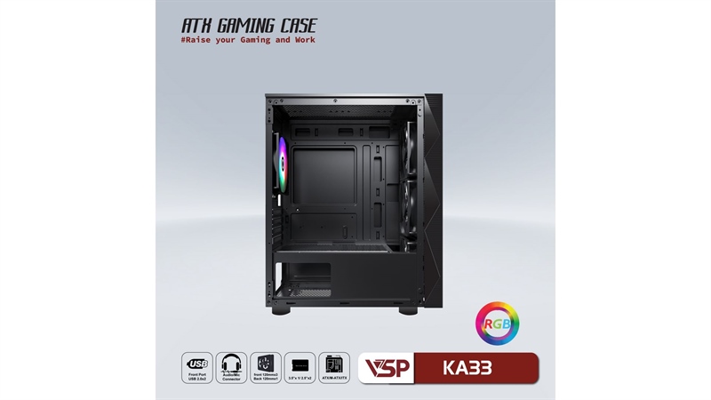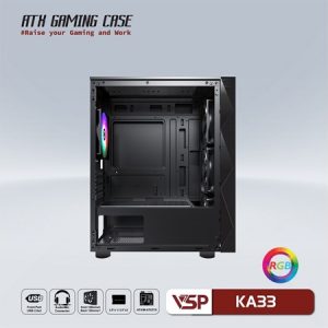 Vỏ Case máy tính VSP KA33B (LED VÔ CỰC – NẮP HÔNG KÍNH) Đen