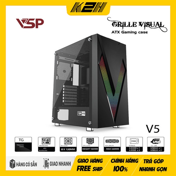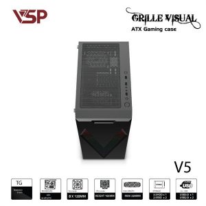Vỏ Case máy tính VSP V5 – Đen (LED RGB MẶT TRƯỚC – NẮP HÔNG KÍNH)